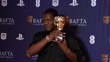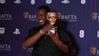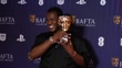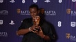 LONDON, ENGLAND - APRIL 8: (SLOW-MO) Abubakar Salim poses in the winner room with the Game Beyond Entertainment Award on behalf of the Development Team for 'Tales of Kenzera: ZAU' during the BAFTA Games Awards 2025 at the Queen Elizabeth Hall on April 8, 2025 in London, England. (Footage by Klára Šimonová/BAFTA/Getty Images for BAFTA)
