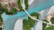 Aerial view of bridge connecting two side over Rakaia Gorge, Canterbury Region, New Zealand.