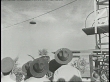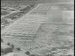 Aerial view of the March Field Air Base / planes take off from runway / plane flies over divers on diving platform, they plunge into the water / audience of soldiers and officers applauds / Marjorie Gestring, dives solo / Frank Kurtz shows off his Olympic diving skills / divers aim for Air Force insignia target in pool.