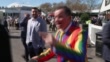 Aintree Grand National Ladies Day; ENGLAND: Merseyside: Aintree Racecourse: EXTHenry De Bromhead (Trainer, 'Minella Times') interview SOTVox pop - male racegoer in colourful rainbow suit (invites reporter for a Guinness)