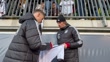 WOLFSBURG, GERMANY - NOVEMBER 10: Alexander Nuebel and Nick Woltemade sign autographs during a public training session of the German national team at AOK Stadion on November 10, 2025 in Wolfsburg, Germany. (Footage by Stuart Franklin/Getty Images)