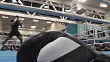 Anthony Joshua spars during a media session at the English Institute of Sport, Sheffield. Interview with Joshua ahead of his world heavyweight title fight against Carlos Takam.