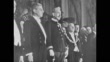 MOT 1934: OUT OF EXILE: Archduke Eugene Habsburg returning home after exile attending gathering in full military dress shaking hands standing next to Chancellor Kurt von Schuschnigg.