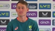 Australia batter Marnus Labuschagne speaks to the media after the first day of the fourth Ashes Test