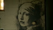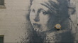 Banksy artwork vandalised; ENGLAND: Bristol: Hanover Place:EXTShots of man filming vandalised Banksy artwork 'Girl with a Pierced Eardrum' (a parody of Dutch painter Johannes Vermeer's Girl with a Pearl Earring) / GVs of vandalised artwork / mural / night shots of artwork