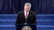 Bill de Blasio on stage with his family after being sworn in as Mayor of New York City by Bill Clinton on January 1, 2014.