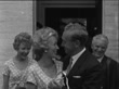 Billy Wright weds Joy Beverley; ENGLAND: Poole Registrar's Office:Joy Beverley and Billy Wright (footballer) arrival - walking towards and pastOther two Beverley sisters pastCrowd3 Beverley sisters and Billy post outsideCrowdOne boy takes cine shot from windowSign 'Registrar Office'Billy and Joy out of officeBoth kiss and rub noses3 Beverley sisters and Billy outside offices11417