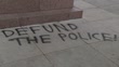 Black Lives Matter protests: London aftermath and clean up; ENGLAND: London: Westminster: Parliament Square:EXT***Strong language in graffiti***'BLM' graffiti on plinth of statue of Benjamin Disraeli / 'ACAB' and pig graffiti on Lord Palmerston statue / 'Defund the Police!' on ground / 'Courage Calls to Courage Everywhere' Millicent Fawcett statue / pressure washer hose / bucket / names of victims written on building / 'Fuck Boris' graffiti on window