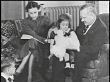 1936 MOTAGE Alf Landon sitting in living room with wife, son and daughter / Kansas, United States
