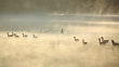 Canada geese swimming through mist - HD stock video