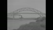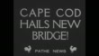 Title card: "Cape Cod Hails New Bridge!" WS Bourne Bridge over Cape Cod Canal / CU concrete pilings and bridge / MA Lt. Governor Joe Hurley, MA Governor James Michael Curley and RI Governor Theodore Greene walk up street, man walks behind them with MA flag, men walk past standing band and crowd / LS 101st Field Artillery shoot off cannon salute by canal / MS engineers pulling ribbon at bridge opening ceremony / MS color guard marches / MS 101st Infantry of Massachusetts National Guard marches across bridge / CU men, women and children sit at side of bridge and watch / VS parade: First Corps Cadets march as honor guard in front of open car carrying Curley, Hurley and Green / MS steamboat Allerton goes through old drawbridge / MS steamboat goes under new Bourne Bridge
