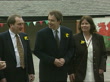 PRINCE CHARLES: RON DAVIES COMMENTS:; WALES CardiffMS Tony Blair (Labour Ldr standing beside Ron Davies (Shadow Welsh sec and woman all with daffodils in lapels GV Large group of schoolchildren with Welsh flags MS Blair chatting to little girl in BV in Welsh hat then stands holding bouquets of spring flowers INT CMS Blair and Davies sitting MS Prince Charles with man who introduces him to another and he shakes CMS Charles as man talking to him CMS SIDE Charles talking by display of photographs