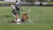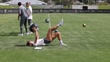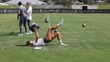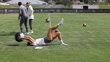 THOUSAND OAKS, CALIFORNIA - MARCH 13: Casey Phair #9 of Angel City FC stretches underthe supervision of performance coach Michael Roman during a training session on the campus of California Lutheran University, on March 13, 2024 in Thousand Oaks, California. (Footage by Kevork Djansezian/Getty Images)
