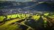 Flight around Castell Dinas Bran, or Crow Castle , in Wales. The ruins are the remains of a castle that once stood on top of the hillside near the city of Llangollen, Wales, UK.