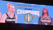 Banner on Wintrust Arena exterior announcing Chicago Sky's championship win