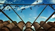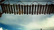 clinging to a wooden bridge and strings, before dropping into the canyon, the nuvoole run in the sky before the storm, the birds flee.