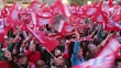 Close up of Bayern Muenchen fans celebrating the German championship title at Marienplatz on May 11, 2013 in Munich, Germany. FC Bayern Muenchen - German Championship Celebrations At The Munich Town Hall at Marienplatz on May 11, 2013 in Munich, Federal Republic of Germany (Footage by Getty Images)