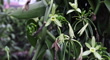 A close-up of vanilla flowers blooming on a vine in a controlled farm environment. - 4K stock video