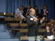 General Election: Conservatives; b)ENGLAND: London: Wembley:TMS Audience at rally waving large blue flags to Lloyd Webber music SOF PAN R-LCMS Large Stars and Stripes flag (USA) amongst other flagsCMS TED ROGERS (Comedian) on platform SOF(Telling jokes about Neil Kinnock)"Kinnock -- Marcos organised the vote"CMS Bob Monkhouse (Comedian) on stageCMS Jimmy Tarbuck (Comedian) on stageCMS Janet Brown (Comedian) dittoMS Bernie Winters (Comedian) and his St Bernard dog and Bob Monkhouse on stage ZOOM IN Winters singing new version of 'Dad's Army' song SOFCMS Words of song for audience to join in coming up screenMS Margaret Thatcher (PM) and husband Denis Thatcher and Norman Tebbit (Tory Party Chairman) on stageCMS MARGARET THATCHER (PM) SPEECH SOF(Refers to music of song just sung entitled 'Dad's Army' and as she's a Mum people should join her Mum's Army)"And by the way -- Mum's army"CAS ex ENG(Hicks/Borer/Gilmartin) L/B 1.18 minsTx 7.6.87/C4N/17.10MIX/FX ARCHIVE CASS 35643 44:16 TO 45:37143070