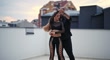 A couple practicing their latino dance moves on a rooftop terrace.