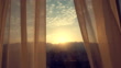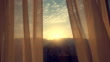 Curtain at the window of room sunset
