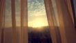 Curtain at the window of room sunset - 4K stock video