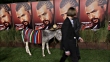 2010 EASTBOUND & DOWN LA PREMIERE: HD: CU ZO WS- Danny McBride moving along the red carpet with donkey, joking, as paparazzi take pictures: Jody Hill walks by & stands nearby; McBride gives leash to little kid on carpet