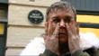 David Bowie releases new single: Steve Strange interview; ENGLAND: London:EXT *** WARNING INTERMITTENT SWEARING ***Steve Strange (Former Visage Front Man) fixing hair and makeup and asking crew if they can lend him a fiver SOT / Steve Strange interview in front of Ziggy Stardust plaque SOT - On release of David Bowie single / clash of the Pierrots - release of his single at same time as Bowie's album- on getting rid of demons- on Bowie being a magpie - very clever thief