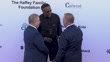 BEVERLY HILLS, CALIFORNIA - AUGUST 15: (L-R) David Pump, Cedric Ceballos, and Dana Pump attend The Harold and Carole Pump Foundation 25th Anniversary Celebrity Dinner at The Beverly Hilton on August 15, 2025 in Beverly Hills, California. (Footage by New Vision/Getty Images)