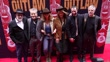 NEW YORK, NEW YORK - APRIL 27: (L-R) David Yazbek, David Cromer, Itamar Moses, Erik Della Penna attend the "Dead Outlaw" Broadway Opening Night at Longacre Theatre on April 27, 2025 in New York City. (Footage by New Vision/Getty Images)