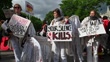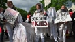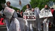 BERLIN, GERMANY - MAY 15: Demonstrators hold signs and placards that say, "Your silence kills," and, "Grief is the last act of love," at the commemoration of the 77th anniversary of the Nakba on May 15, 2025 in Berlin, Germany. The Nakba refers to the violent expulsion by Jewish paramilitaries and, following the creation of the state of Israel, by the Israeli military of approximately 750,000 Palestinian Arabs from their lands in 1948 in what was then Mandatory Palestine. Today's commemorations are taking place as many Palestinians in Gaza face starvation due to the Israeli blockade of humanitarian assistance. (Footage by Craig Stennett/Getty Images)
