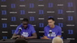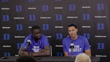 DURHAM, NORTH CAROLINA - SEPTEMBER 27: Director of player development Justin Robinson (R) of the Duke Blue Devils speaks to the media about his coaching relationship with Khaman Maluach during Duke Men's Basketball Media Day at Cameron Indoor Stadium on September 27, 2024 in Durham, North Carolina. (Footage by Lance King/Getty Images)