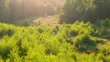 Danish protected nature from drone point of view. Drone flying forward over bushes. The area is called "Svanninge Bjerge" or in English "Svanninge mountains" but is actually some hills