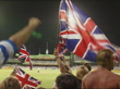 World Cup: England beat Australia; INTCMS Ian Botham (England Cricketer intvwd SOF- We wanted to sing the national athem EXTBV English fans in stadium waving union jacksMS Fans banner "You might get your arm around our Queen but you wont get it around our cup"MS Fans with banner "The Empire Strikes back"