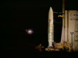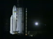 European comet Rosetta: Take off delayed; ITV LUNCHTIME NEWS: LAWRENCE MCGINTY FRENCH GUYANA: Kourou: EXT/NIGHT LS European Space Agency rocket Ariane-5 (containing comet probe Rosetta) on launch pad after take-off delayed due to techincal fault GVs Rosetta rocket on launch pad (3 SHOTS)