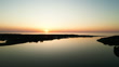 Experience serene aerial sunrise over calm river with golden horizon, capturing breathtaking natural landscape - 4K stock video