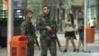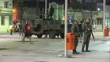 CLEAN: Exterior night shots heavily armed soldiers and police officers on security patrol outside the Joao Havelange Olympic Stadium on final night of the Rio 2016 Olympic Games. on August 21, 2016 in Rio de Janeiro, Brazil.
