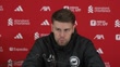 LIVERPOOL, ENGLAND - DECEMBER 13: Fabian Hürzeler, manager of Brighton and Hove Albion, speaks about Kaoru Mitoma playing for 30 minites after their Premier League match against Liverpool during a press conference at Anfield on December 13, 2025 in Liverpool, England. (Footage by Niche Sport Media via Getty Images)