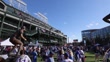 CHICAGO, ILLINOIS - OCTOBER 8: (EDITOR’S NOTE: Audio/music licensing is not included.) Fans walk next to a statue of Ryne Sandberg outside the stadium before Game Three of the National League Division Series between the Milwaukee Brewers and the Chicago Cubs at Wrigley Field on October 8, 2025 in Chicago, Illinois. (Footage by Michael Reaves/Chicago Cubs/Getty Images)