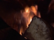 Detail shot form fire in an old fashioned metal oven. Paper, wood and coal burning merrily.