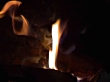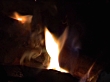 Detail shot form fire in an old fashioned metal oven. Paper, wood and coal burning merrily.