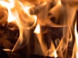 Detail shot form fire in an old fashioned metal oven. Paper, wood and coal burning merrily.