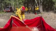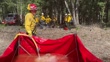ANGWIN, CALIFORNIA - MAY 15: A firefighter fills a tank with water during a controlled burn at the Pacific Union College Forest on May 15, 2025 in Angwin, California. Napa Firewise, a county-wide nonprofit with a mission to reduce the risk and impacts of wildfires through fire fuel reduction and community education in Napa County, held a prescribed burn to train Prescribed Burn Association members and mitigate dry fuels that could advance wildfires in the area as fire season approaches. (Footage by Justin Sullivan/Getty Images)