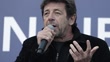 PARIS, FRANCE - OCTOBER 17: (EDITOR'S NOTE: Audio/music licensing is not included.) French singer and actor Patrick Bruel performs during a rally organized by the CRIF at Trocadero square in support for the release of Israeli hostages held by Hamas in Gaza on October 17, 2025 in Paris, France. Members of Mères de l'Espoir group gathered at Trocadéro on Monday to celebrate the release of all 20 living hostages by Hamas. (Footage by Vincent Isore/IP3/Getty Images)