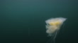 Fried Egg Jellyfish also known Egg-Yolk Jellyfish (Phacellophora camtschatica). Near Sooke on Vancouver Island. British Columbia, Canada. Filmed with Red camera.