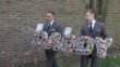 Funeral of Tom Parker; ENGLAND: Orpington:EXTThe Wanted band members (including Max George, Siva Kaneswaran, Jay McGuiness and Nathan Sykes) along / fans outside church / various of mourners along into church including The Wanted and Rebecca Adlington (Olympic gold medallist) / men along carrying 'DADDY' flower message / GVs of fans outside church / Liam Payne (Singer) along to church / The Wanted band members and others along from church / GVs of fans crying.