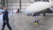 Grant Shapps interview with Russian billionaire's detained private jet; ENGLAND: London: Biggin Hill:INT Grant Shapps MP (Transport Secretary) inspecting plane owned by Russian businessman Eugene Shvidler in hangar