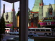Grauman's Chinese Theater (aka Mann's Chinese Theater), with 1960's early 1970s automobiles passing along Hollywood Boulevard. The featured attraction at Mann's is Hello, Dolly! starring Barbra Streisand, Walter Matthau, Michael Crawford. Celebrity autographs, handprints and footprints in theater forecourt.