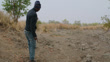 A local guide, dressed in casual attire, traverses the rugged landscape of Kafue National Park highlighting the tracks and aftermath of lions' hunt. Explore the natural habitat and witness the silent tales of predators in the wild.