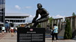 MS T/L Guy Lafleur statue in front of Bell Centre / MONTREAL, QUEBEC, Canada - HD stock video